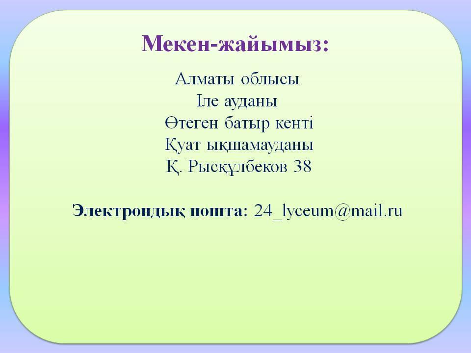Мектептің мекен-жайы » №24 ОРТА МЕКТЕП