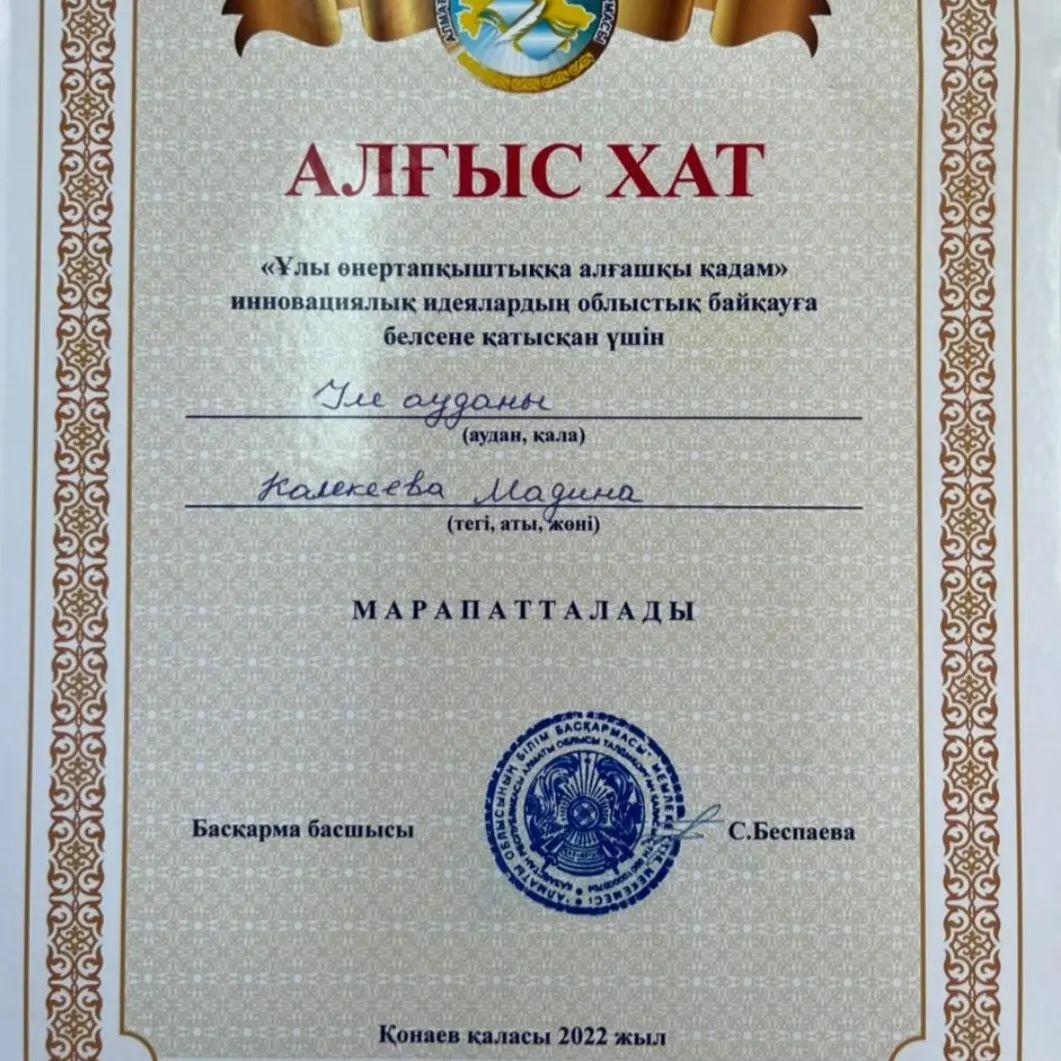 "Ұлы өнертапқыштыққа алғашқы қадам" инновациялық идеялардың облыстық байқауында Іле ауданының командасы жүлделі 1-орынды жеңіп алды. Біздің лицейден аталған командада "Ақылды жылыжай" тақырыбымен 8-сынып оқушысы Мұхтар Еркебұлан да өз жұмысын қорғап, жоғары нәтижесін көрсете білді. Жетекшісі информатика пәнінің мұғалімі Калекеева Мадина Нұрланқызы. Әріптесіміз бен шәкіртімізді құттықтай отырып, республикалық кезеңде сәттілік пен жеңіс тілейміз! Жетекшісі информатика пәнінің мұғалімі М.Н. Калекеева 🏪💐✊🏻
