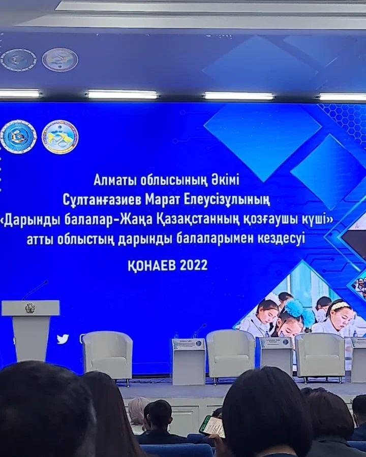 2022 жылдың 28 желтоқсан күні Қонаев қаласының Мәдениет үйінде Балалар жылының қорытындысы ретінде өңіріміздегі дарынды балаларға қолдау көрсету мақсатында "Дарынды балалар - Жаңа Қазақстанның қозғаушы күші" тақырыбында облыс әкімі Сұлтанғазиев Марат Елеусізұлының облыстың дарынды балаларымен кездесуі өтті. Кездесуге халықаралық, республикалық деңгейдегі академиялық білім сайыстарының, өнер, спорт жарыстарының жеңімпаздары атанған 50 дарынды балалар мен талантты жастар шақырылды. Сонымен қатар, әр жылдардағы халықаралық, республикалық олимпиада жеңімпаздары, Қазақстанның құрама командасының мүшелері, бүгінде еліміздің, облысымыздың олимпиадалық құрама командасы мен олимпиадалық резервінің тренерлері, республикалық «Үздік педагог» байқауының жеңімпаздары мен жеңімпаз оқушылардың жетекшілері қатысты. Кездесуде облыс әкімі оқушыларға 100 мың теңгелік сертификат, ата-аналары мен ұстаздарына Алғыс хаттар табыстады.