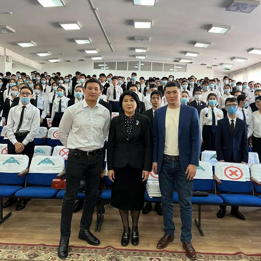 Бүгін лицей директоры Гүлжан  Жұбайқызының бастамасымен оқушыларға дұрыс бағыт- бағдар беру, мамандық таңдаудағы басты міндет пен оның маңыздылығын түсіндіру мақсатында «Мамандығым - мақтанышым» такырыбында жас кәсіпкерлер және өз ісінің нағыз мамандары, елі үшін қызмет жасап жүрген азаматтарымыз: әлемдік деңгейдегі аспаз, кондитер, кәсіпкер Азамат Абдиев Маратұлы мен белгілі Джиу- джитсудан спорт шебері, Армия генералы Сағадат Нұрмағамбетов атындағы "Sagadat Batyr - QTТ" спорт клубының негізін қалаушы Орынбасаров Нұрсұлтан Жұмабайұлымен кездесу өткізілді. Кездесу өте жоғары деңгейде өтті, келген қонақтарымыз оқушыларға мамандықты сүюдің қаншалықты маңызды және елімізге берер пайдасы туралы ақыл-кеңестерімен бөлісті. Азамат Маратұлы өз мамандығының қыр-сыры мен жетістікке жету жолын баяндаса, Нұрсұлтан Жұмабайұлы спорт жайында  маңызды ақпараттарымен бөлісті. Сұхбаттаса отырып,  оқушыларымыз да  көкейіндегі  сұрақтарды қойып, тұшымды жауаптарын  алды. Кездесу қонақтары қай салада болмасын, қандай мамандық иесі болсын өз ісінің шебері, өз еліне тамшыдай болса да пайдасы тиетін іспен шұғылдану -  адаспай таңдалған, нағыз маманның ісі екенін айқындап берді. Бұл кездесу біздің шәкірттерімізге үлкен мотивация болды. Өз ойларымен, жетістікке жетудегі еңбектерімен бөліскен Нұрсұлтан Жұмабайұлы мен Азамат  Маратұлына үлкен алғысымызды білдіреміз.