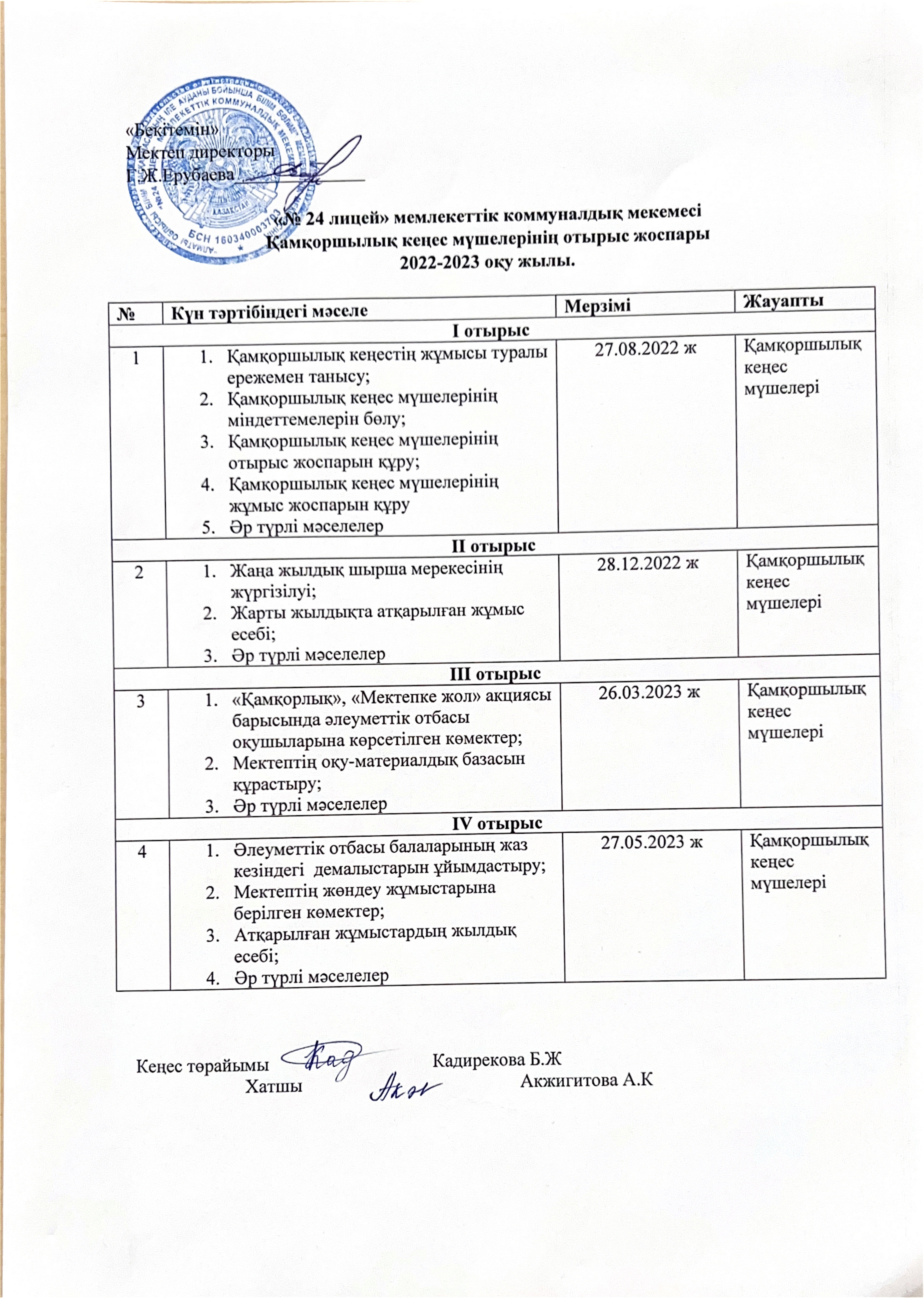 » » » Қамқоршылық кеңес мүшелерінің отырыс жоспары.2022-2023 оқу жылы