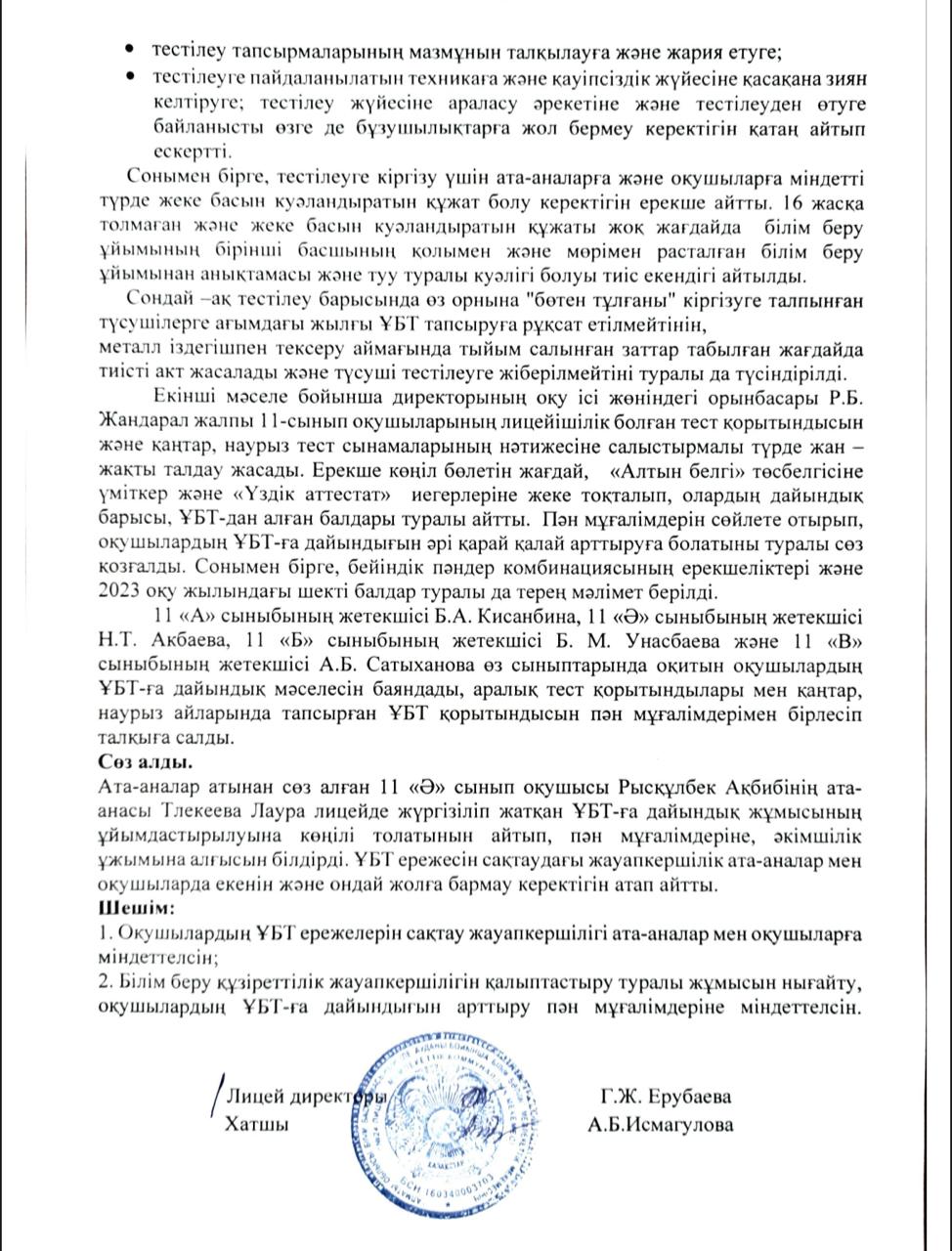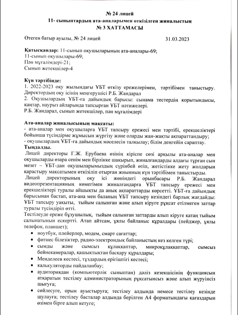 31 март 2023 0 1 2 3 4 5 2022-2023 оқу жылындағы ҰБТ бойынша 11-сыныптардың ата-аналарымен өткізілген жиналыстың хаттамасы