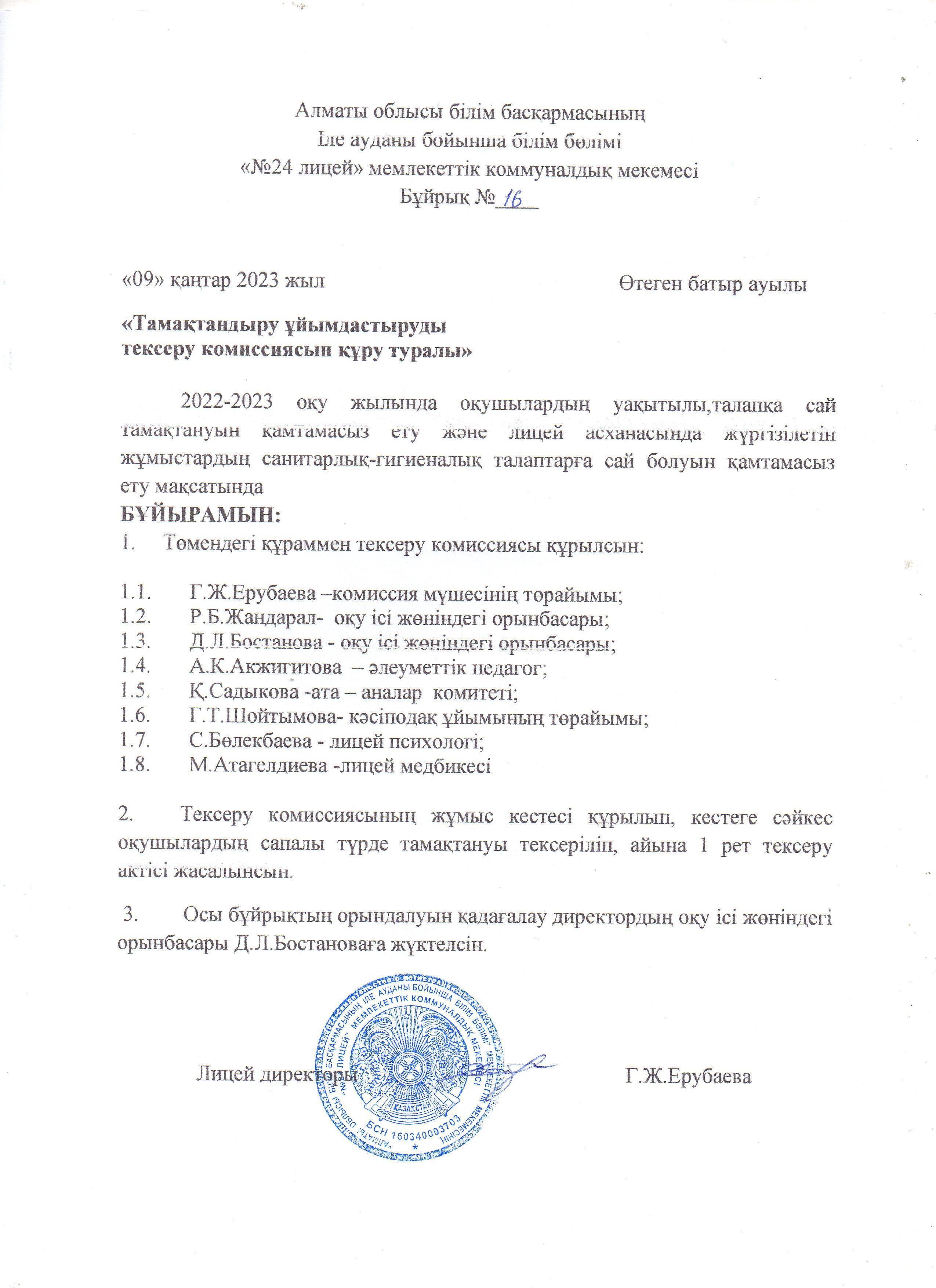 Тамақтандыру ұйымдастыруды тексеру комиссиясы » №24 ОРТА МЕКТЕП